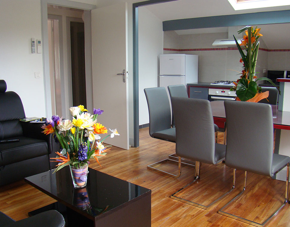 Avec une décoration soignée et moderne, nos gîtes allient confort et fonctionnalité pour répondre à toutes vos attentes. Que vous voyagiez seul, en couple ou en famille, vous trouverez l’espace qui vous convient pour profiter d’un séjour en toute sérénité.